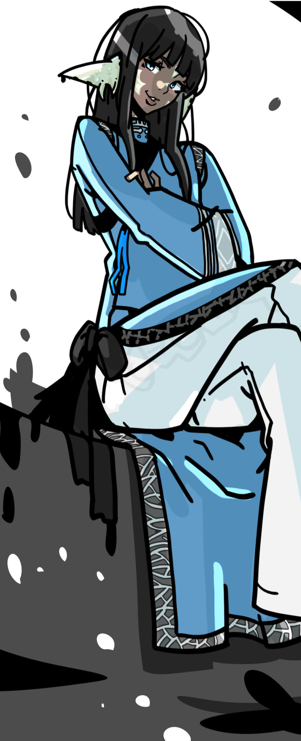 On any given night in Thanalan, one might look to the Ishino Distillery for a small taste of the Far East. A night of relaxing atmosphere, lovely company, and the finest sake of one of Othard's premiere mercantile families - the Ishino clan - is easily promised to its guests.Aoi Ishino stands at the front of the house most nights, only recently elevated to the head of his clan - yet he still operates here, in Thanalan, first and foremost. Much as it might be curious, the young lord's lips are almost permanently twisted into a smile. Surrounded by loyal employees and friends all the same, it would be thought that the lord Ishino's happiness was at its apex when with his people....Only to be lifted yet further, yet higher, when he is joined by the Madame of the house, Chigusa Yayoi: although the lord Ishino merely calls her his "Yayoi-sama". A trail of smoke often follows behind Chigusa, her favor coveted by both Aoi and those surrounding them. It is said by frequent visitors to the distillery, oft in a whisper, that in the time she has finished taking a drag from her pipe - the Madame has already decided your use to her. An ephemeral presence within the Distillery, yet one that carries such peerless importance.